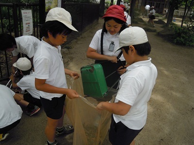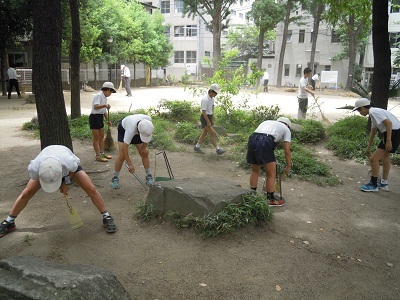 阿波座南公園で地域の方や近隣の企業の方々といっしょにそうじをしました。