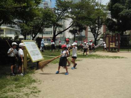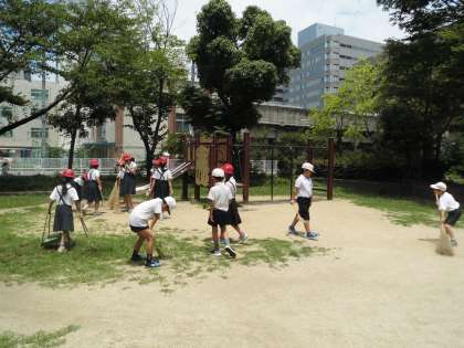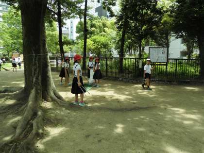 3年生は阿波座南公園で、地域や近隣の企業の方たちと、