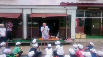 カレー作りが、始まります。宿舎のご主人から、説明を受けてスタートです。