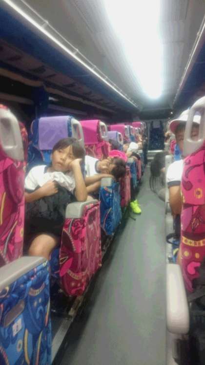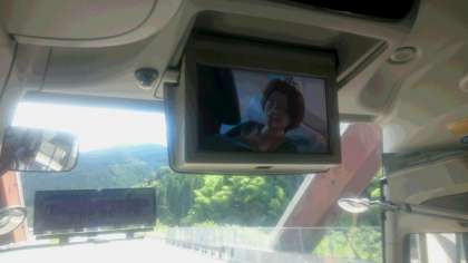 バスの中では、DVDシュレックを流していますが、観ている児童、寝ている児童半々くらいです。