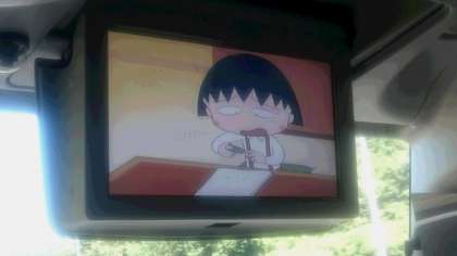 赤松パーキングエリアを出た後、子供達はちびまるこちゃんのDVDを、観ています。