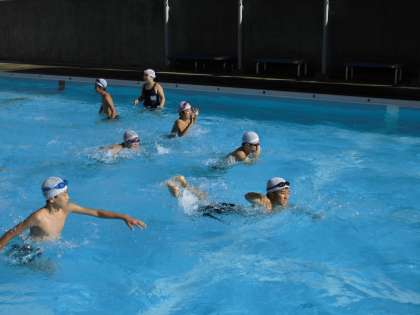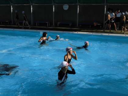 泳いだり、歩いたりして、思い出のプールに