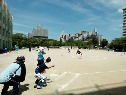 南港緑小学校で開催された、ソフトボール交歓会に参加しました。