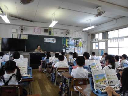 教育実習生の先生の紹介と、音楽の授業をしました。