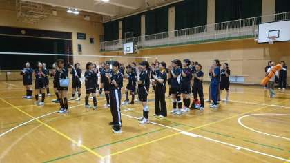 我が校バレーチームは、2勝1敗の好成績を収めました。最優秀アタッカー賞には、我が校土井さんが選ばれました。