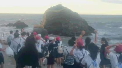 二見プラザでのショッピングの後、浜辺を散歩しました。