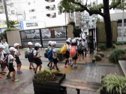 低学年の児童たちが、遠足に元気よく出発しました。