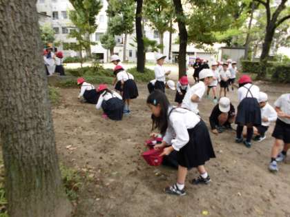 阿波座南公園で、団栗(どんぐり)拾いをしました。
