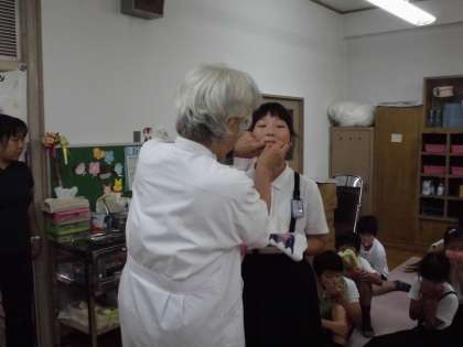 来て頂き、歯に関するお話、歯磨き指導、フッ化塗布を
