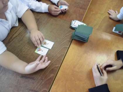 「ぼうずめくり」(日本の遊び)を班別にして、楽しみました。