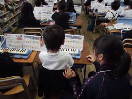 鍵盤ハーモニカの指導等忙しく体験をしていました。