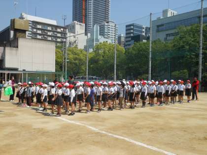 3年生・4年生の団体演技の第一回練習を行いました。