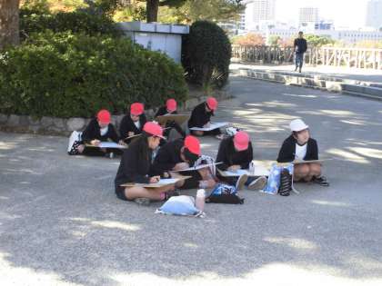 写真は、写生をしている様子です。