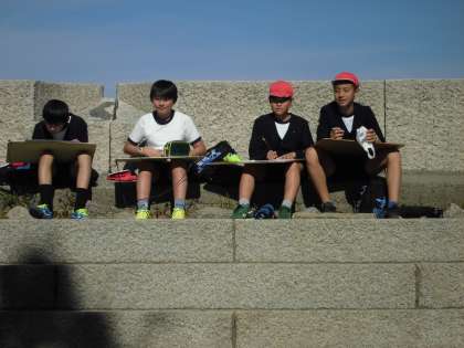 大阪城では、天守閣に上ったり、写生をしたり、外国の