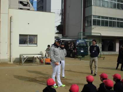 お越し頂き、野球の出前授業をして頂きました。