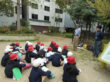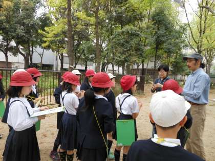 阿波座南公園で自然観察をしました。ゲストティーチャーの方々にもご協力いただきました。