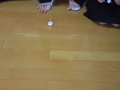 ふたにつまようじを通した「コマ」でコマ回しを