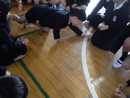 今日の児童集会では、牛乳キャップとペットボトルの