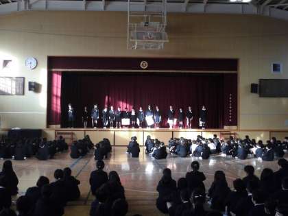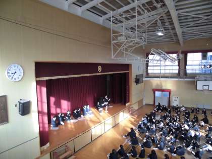 給食に関連して栄養関連クイズ出題で、児童たちに