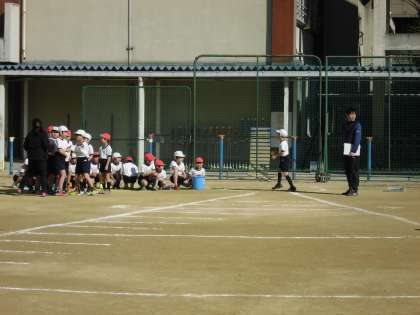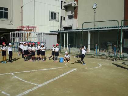 2年生の体力測定は、今日運動場でソフトボール投げを