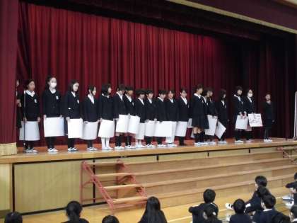 今日の児童集会で、「家庭科クラブ」の発表がありました。