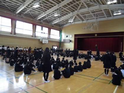今日の児童集会では、最後にこれまで班長・リーダーと