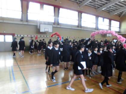 集会のフィナーレは、6年生の退場シーンです。