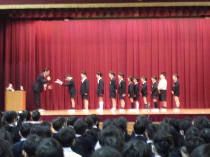 それぞれ大会で入賞したので、その表彰式を行いました。