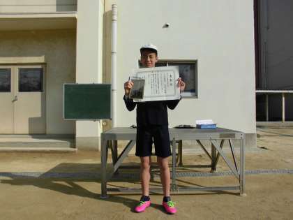 受賞した6年男児に表彰状と記念プレートを授与しました。