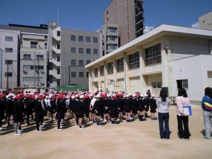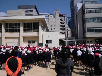 本年度初めての避難訓練でした。給食室から火災が発生した想定で訓練を行いました。初めての1年生を含め、みんな静かに緊張感をもって取り組みました。