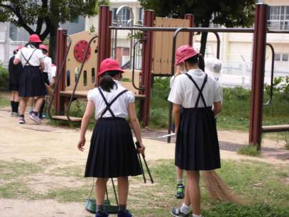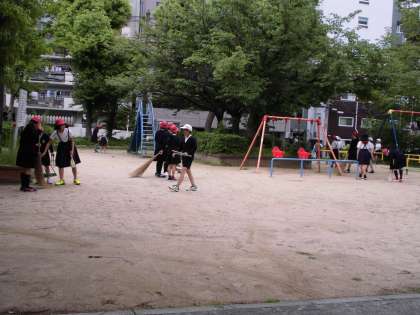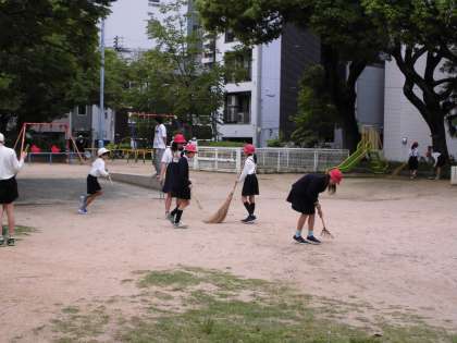 明治小学校では、月に一度地域の方々と一緒に阿波座南公園を清掃しています。