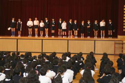 朝の児童集会で、本年度の委員会の委員長と副委員長の紹介がありました。