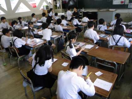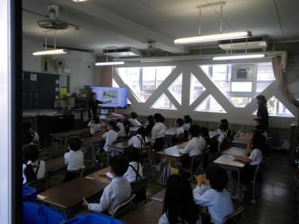 1組は、国語の学習。2組は、お手紙を作っています。入学してからお世話になった2年生や、6年生に向けて、丁寧に仕上げていました。わからないことは先生に聞きに行って、心のこもった手紙を作ろうとしている姿が印象的です。
