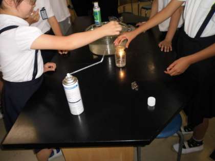 気体の種類によって、炎の燃え方が変わるのか実験しました。