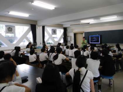 齋藤先生の赤ちゃんのおなかの様子など、実際の映像も交えながら生命誕生の神秘や生命を尊重する心を養いました。
