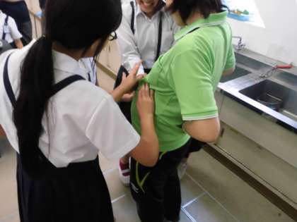 最後は実際に斎藤先生のお腹を触らせてもらいました。動く様子を感じた児童もおり、びっくりした表情もうかがえました。