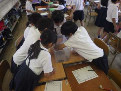 2年生はザリガニの観察をしていきます。