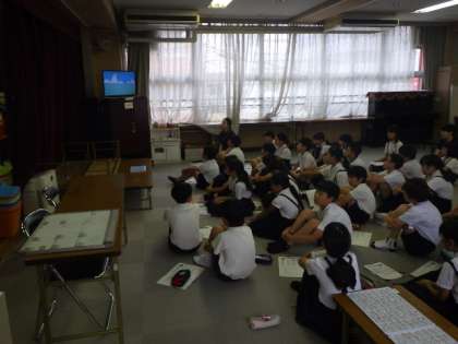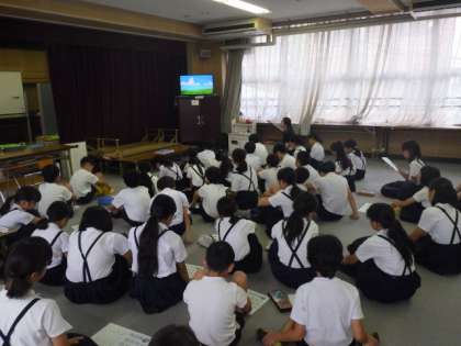 5年生はみんなで「さとうきび畑」のビデオを鑑賞し、平和について考えました。