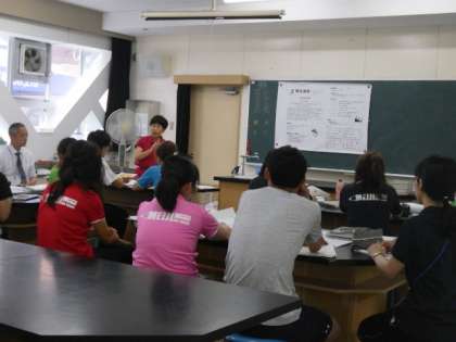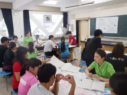 今日の4年生の国語の授業をもとに、教員みんなで指導法を勉強しました。グループに分かれそれぞれの意見を出し合いました。
