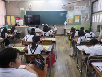 先生の話のあと、しっかり大掃除をしているクラス、それぞれのクラスでまとめの学習をしているクラス。いろいろあります。
