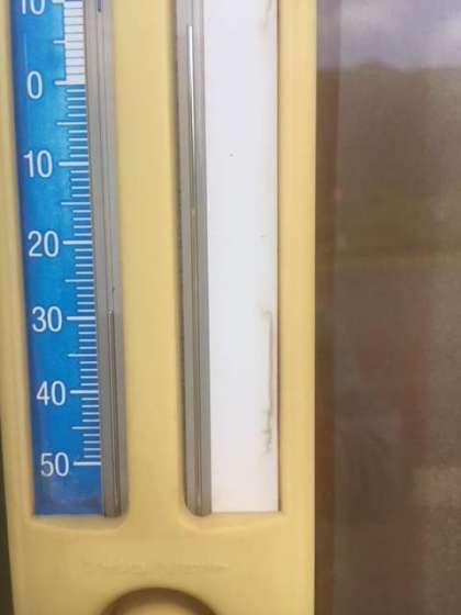 温度計 読み間違いました。冬は雪に覆われるためか、上が零下になっていました。現在は30度くらいです。