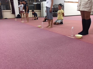 お箸ダーツです。割り箸を落としてペットボトルに入れます。