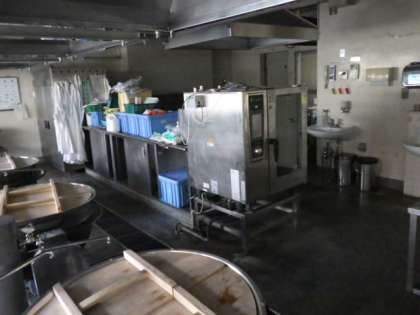 夏休み、給食室は2学期の給食準備のため清潔にきれいにしています。
