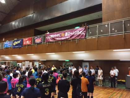 西区スポーツセンターで開かれています。 今年で49回になるということです。「高校球児に負けない熱戦を」とのご挨拶がありました。