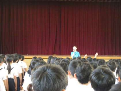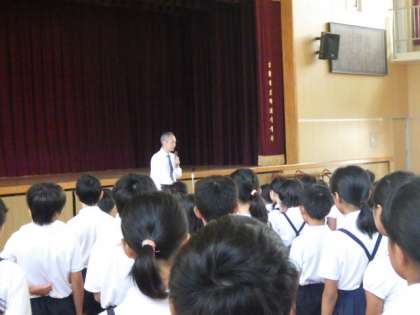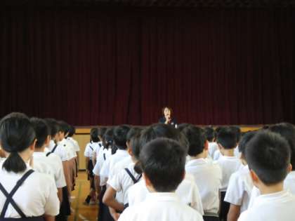 校長先生からは先週、「夢授業」として5,6年生に水泳指導に来ていただいた千葉すずさんが、明治小学校の児童は聞く姿勢がきっちりとできている。とお褒めの言葉をいただいたことを話ししました。これからもしっかりと続けてほしいと思います。