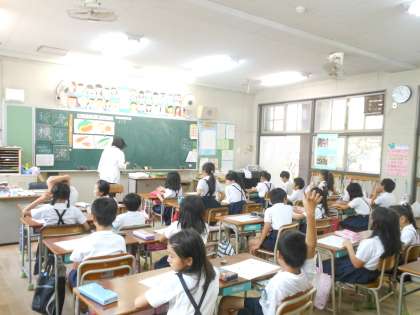 堀江小学校 栄養教諭の仲平先生に栄養指導を