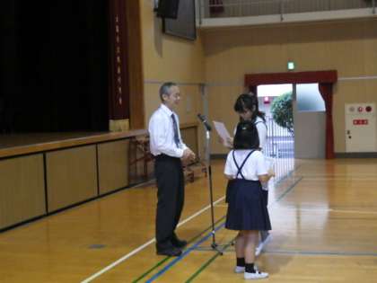 そのあと、校長先生からは先週近畿地方に上陸した台風の話でした。みんなが協力して片付けをしていたこと、6年生については後日、みんなのために、校舎周りをきれいにしたことの紹介がありました。