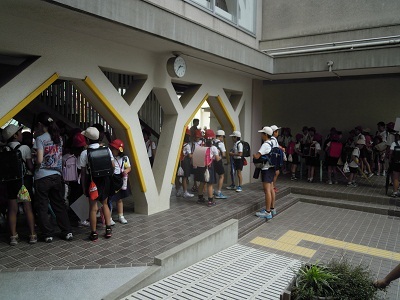 学期末におこなっている地域子ども会。それぞれの分団に分かれて、近所で気を付けること(工事・交通)や夏休みの過ごし方など話し合いました。