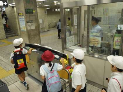 自分たちで切符を買って、電車に乗って中央図書館へ行きました。