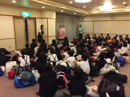 開舎式です。代表の児童が宿舎の方に挨拶をしました。